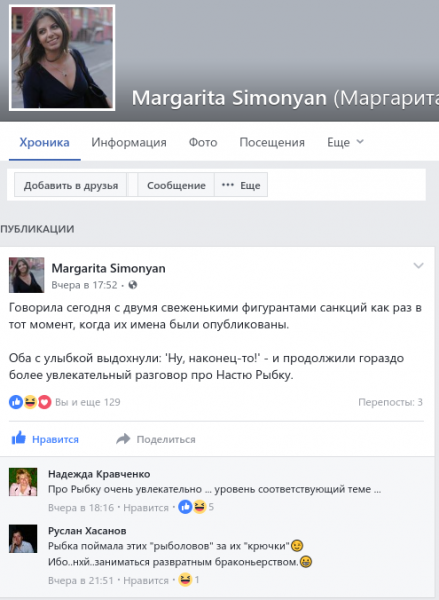 Говорила сегодня с двумя свеженькими фигурантами санкций как раз в тот момент, когда их имена были опубликованы.