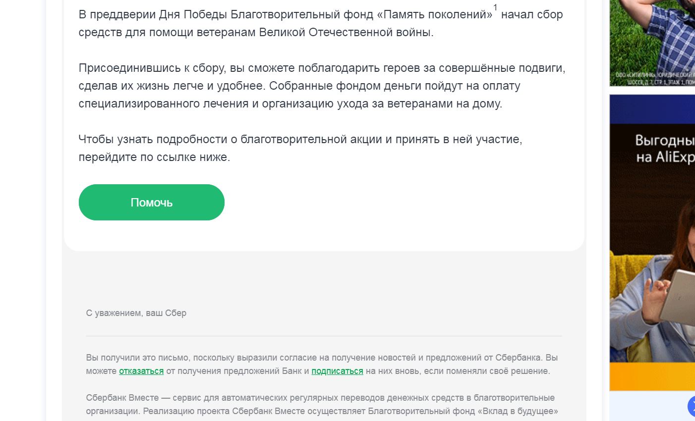 сегодня СБЕР на мыло прислал приглашение "подать ветеранам":