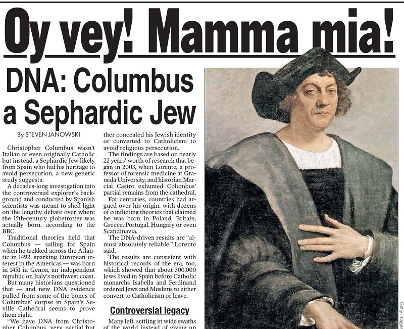 Украина, надеюсь, уже вызвала посла Испании с нотой протеста? Украинские ученые ведь давно доказали, что Колумб был галичанином родом из Коломыи! Такое наглое посягательство на историческую правду со стороны испанских евреев - это, согласитесь, казус белли!