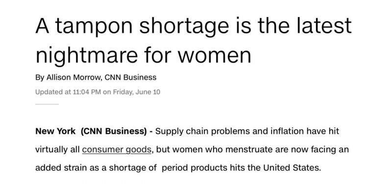 Экстренная новость от CNN: в США начался дефицит женских тампонов! Очень любопытно будет послушать Байдена по этому поводу. Как он Путина к этому приплетет?