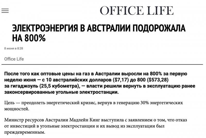 А вот австралийцы молодцы. Закупили у Маска супербатарейки и в ус не дуют - у них цена киловатта местами выросла... в 80 раз :о)