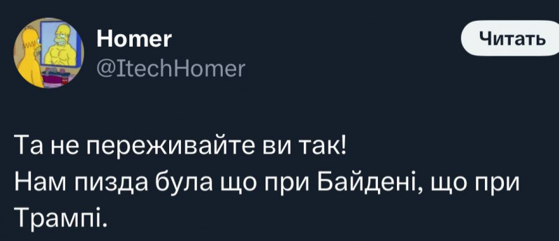 Напоминаю, Трамп - тот, кто продал Джавелины Киеву. Кажется, первый раз вы уже обосрались, поставив на него.