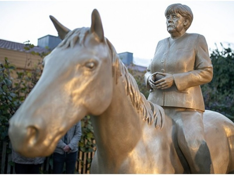 Немецкий скульптор Вильгельм Кох представил в пятницу конную статую уходящего канцлера ФРГ Ангелы Меркель, планируется, что это произведение будет выставлено до лета 2022 году перед музеем Tempel-Museum в Баварии.