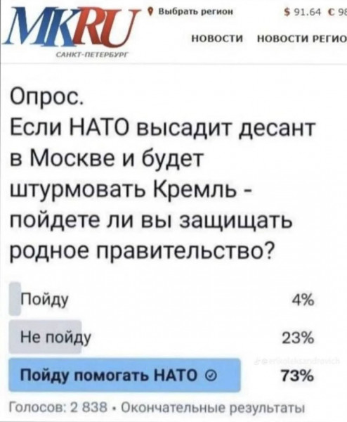 ну во первых я не укронацик, а мирный гражданин. а во вторых речь в опросе была про кремль а не про мирное население. но ты очень возбудился на это, ибо хозяев твоих обижают.