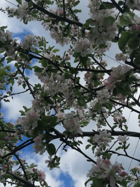 У нас ещё не цветут, на яблонях пока только бутоны.