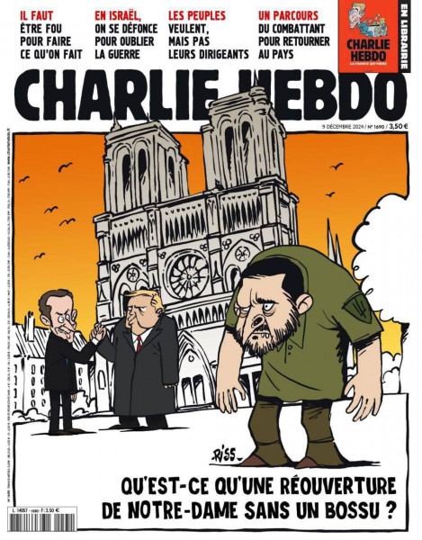 Журнал "Шарли Эбдо"Поместил на обложку зеленского в виде Квазимодо с надписью