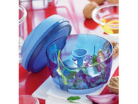 В общем я опять подсела на кухонные прибамбасины. Мне на день рожденья подарили тапервееровскую лукорезку... и я попала. Напокупала у них всяких штукенций, довольная, как слон. Но складывать мне уже все это некуда! Я до сих пор не придумала, куда запихнуть свои новые кастрюли и сковороды Биалетти с керамическим покрытием :(