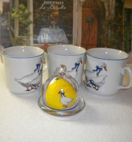 нее...без картинок не было... а в гусей этих чешских давно влюблены, но под зелёную кухню, хоть и кантри, они не совсем то )))...долго сдерживались, облизывались - не покупали... но вчера, увидев такое ЧУДО, не устояли... для комплекту пришлось чашки и стаканчики приобрЕсть )))