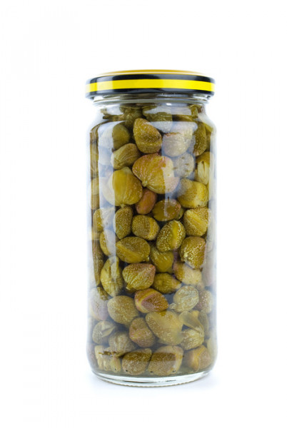 Нераспустившиеся цветочные бутоны растения Capparis spinosa. Употребляются они маринованными или консервированными в уксусе с солью. Каперсы используют для приготовления многих блюд. Вкус их можно сравнить с горчицей или чёрным перцем. Сильный аромат каперсы имеют благодаря горчичному маслу, которое появляется при растирании стебля растения. (с) Википедия.