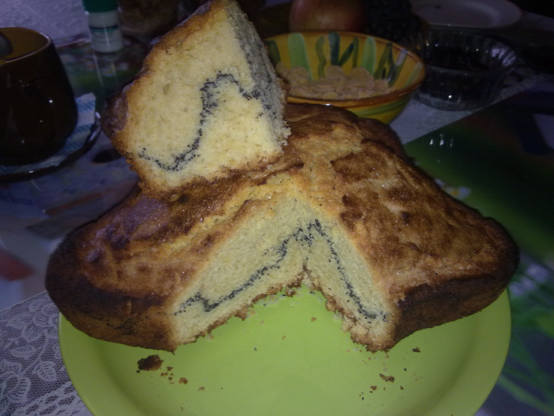 Обычно выпекаю его в виде коврижки толстенькой. На фото коврижка с прослойкой мака.