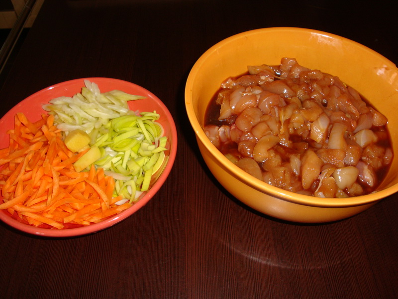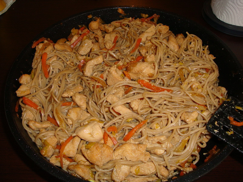 В соусе терияки готовилась курица с овощами и лапша собу.