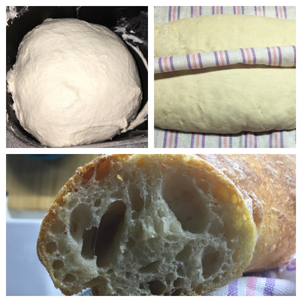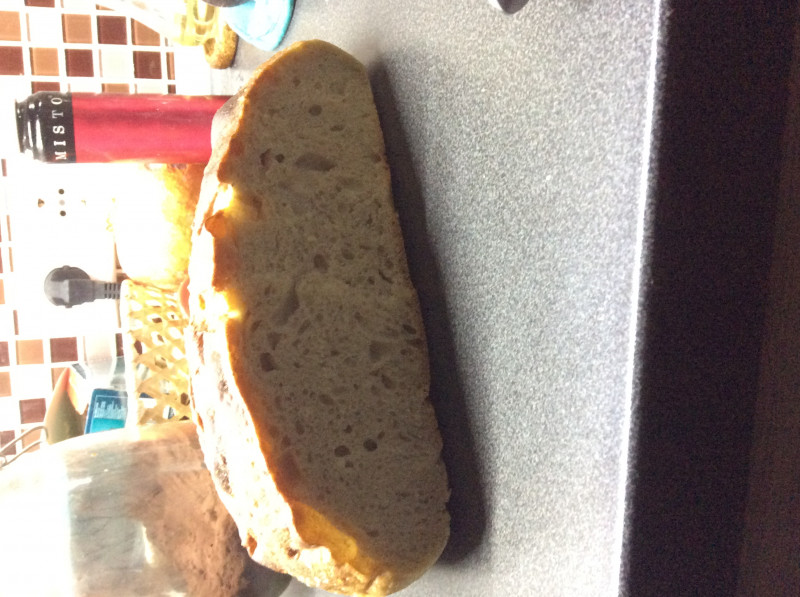 Фото прикрепила. После замеса, на расстойке и после выпечки. Ставила багеты на спелом тесте порецепту Бертине.