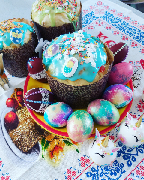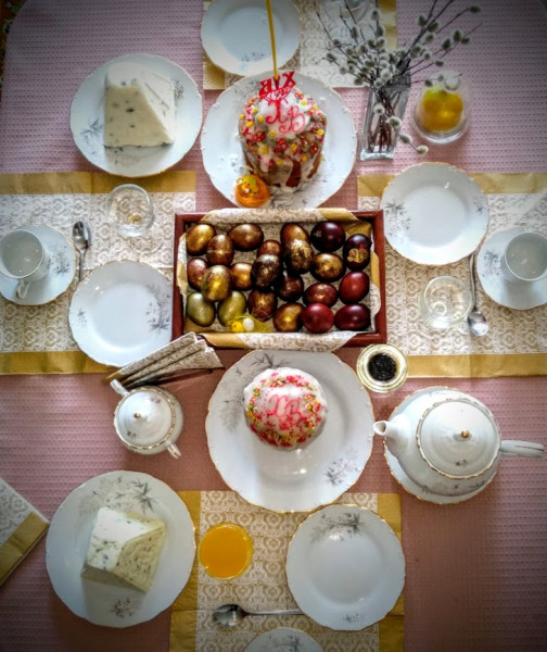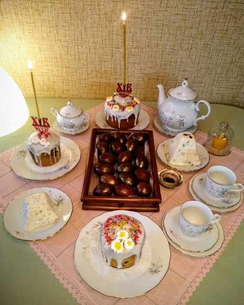 Рецепты у меня традиционные - заварная сметанная пасха, кулич по Похлебкину, яйца шелухой