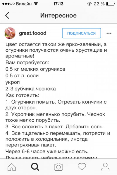 Добрый день! Подскажите, пожалуйста, может быть кто-нибудь знает рецепт малосольных огурчиков, которые засаливают в пакете? Пару лет назад пробовала такие сделать, получились очень вкусные, да и рецепт был простой, хочу снова попробовать, дала знакомой переписать рецепт, и с концами...Вовремя о рецепте не вспомнила, сейчас пытаюсь найти...