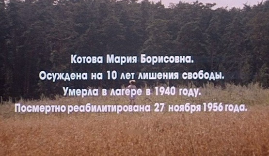 Меньшиков едет в пионерский лагерь "имени Павлика Морозова", где расхаживает в чёрном плаще и в чёрных сапожищах чисто Дарт Вейдер – только что имперский марш не играет да не пыхтит страшно. А в пионерлагере тупые дети совков отрекаются от своих родителей — врагов народа и пишут друг на друга доносы. Не отрекается только репрессированная дочка репрессированного Михалкова, которая переехала из лагеря для членов семьи изменников Родины в пионерский лагерь и трудится там пионервожатой. Это особенно яркий пример документалистики происходящего — вся страна в лагерях, но особо толковые дети врагов народа руководят детским коммунистическим движением. Конечно, дочка не поддаётся на уговоры упырей-большевиков. И там, где гордая девочка только плачет, герой актёра Панина буквально обоссывается от ужаса.