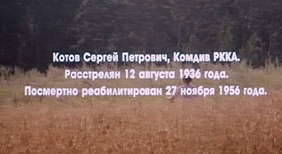 Товарищ полковник мертвеет от ужаса, постоянно вскакивает по стойке смирно, смотрит перед собой и ведёт себя на допросе как советский интеллигент. Каковым, судя по фразам «Как я должен отвечать: как чекист или как человек?», при таком звании и является. Это, надо понимать, правда характера. Упырь Сталин даёт команду аристократичному Меньшикову разыскать комдива Котова.