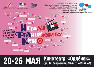 С 20 по 26 мая кинотеатр "Орленок" и Французский центр культуры и образования "Альянс Франсез - Нижний Новгород" при поддержке Посольства Франции в России представляют фестиваль "Неделя современного французского кино - 2010". Фестиваль в Нижнем Новгороде станет значительным событием 2010 года, объявленного Годом России-Франции. Разные по тематике и представленным жанрам картины дают срез современного французского кино.