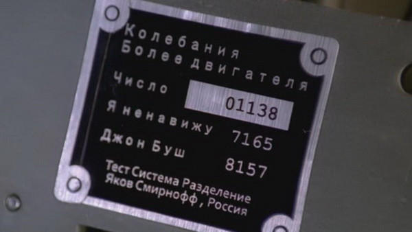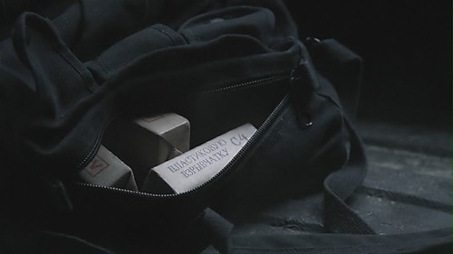 Основной прикол на втором кадре. Русские спецагенты носят при себе вот такие сумки с пластиковой взрывчаткой, на которой написано: "ПЛАСТИКОВУЮ ВЗРЫВЧАТКУ С4". Почему винительный падеж? А чтобы, когда тебя американские копы остановят и спросят, что в сумке, то сумку открыть и, рыча русским акцентом, прочесть вслух по слогам.