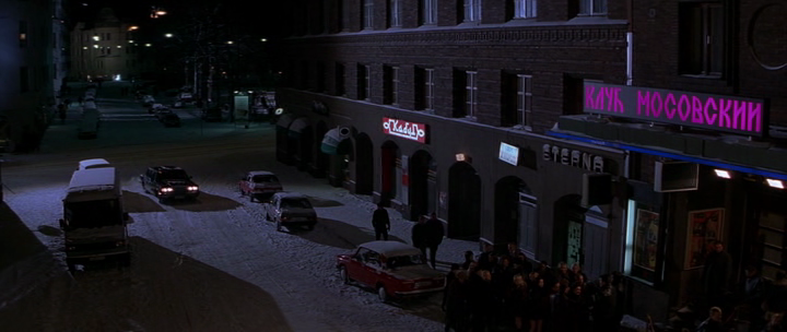 Принимайте в коллекцию еще один кадр. Фильм "Шакал" (The Jackal) 1997 с Брюсом Уиллисом и Ричардом Гиром. Москва. Центр города. Над входом в клуб "Мосовский" (Московский) надпись "ETERNR" (Enter, типа вход тута)