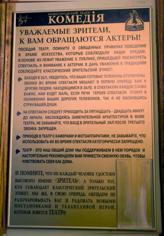 Но вы сам - никому и ничего, в смысле сооблюдения написаных правил поведения в театре (которые висят на видном месте).