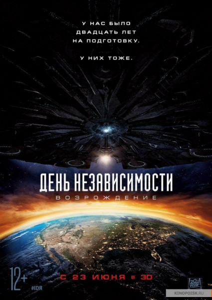 Да, Фильм "День Независимости 2" конечно классный и спец-эффекты тоже не подвели. Сюжет в первой части был лучше конечно и даже получил награду за лучшие спец-эффекты. Если посмотреть все две части то смотреть станет гораздо легче, не надо даже напрягать мозги. Кто, откуда, когда, с кем.Но лапов конечно было до хрена. По идеи земля должна была хоть чуть-чуть сместиться когда на неё презимлился огромный кусок железа с плазменный буром, хоть-куда. Но вообще фильм показал как всегда, что всё-таки только работая в команде можно покончить с войнами. Советую всем сходить и посмотреть. Фильм отличный, даже в 3D дух захватывает, всё как на яву. Блин, вот 20 лет все страны жили в мире и согласии. Жаль, что это всего лишь фильм. Фильм посмотрел на сайте kinokong.net . Сайт отличный, всегда хорошо качество, и ещо там можно скачивать фильмы.