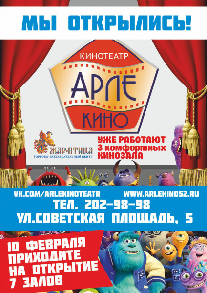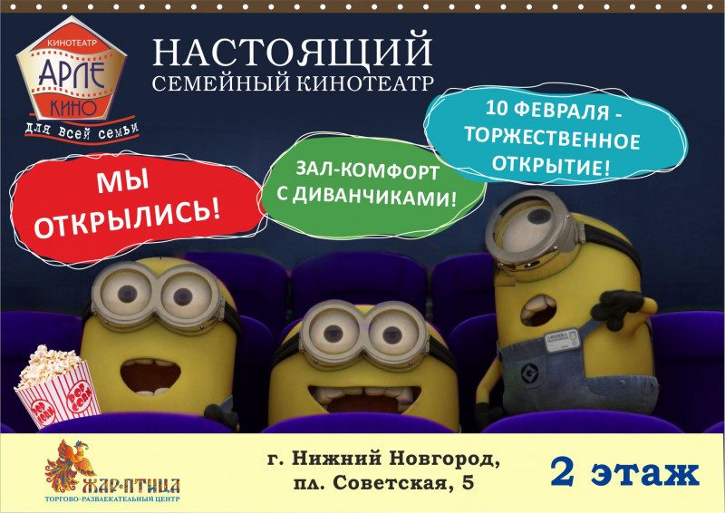 Добрый день! В Советском районе открывается новый комфортабельный кинотеатр АРЛЕКИНО (ТРЦ Жар-птица, пл. Советская, 5, 2 этаж).