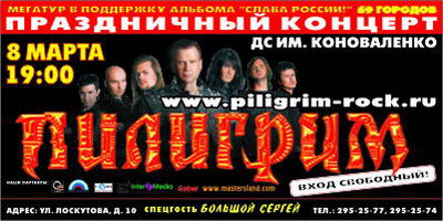 8 марта 2008 года в рамках концертного тура группы "Пилигрим" в поддержку альбома "Слава России!", состоится наш большой праздничный концерт в г. Нижний Новгород