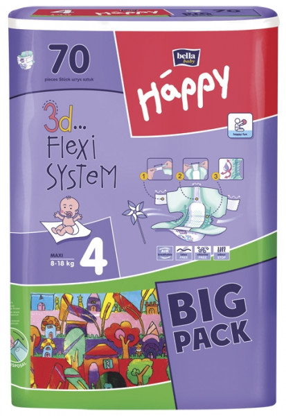 Подгузники Bella Baby happy fun 4 (8-18 кг) 70 шт - 400 руб.