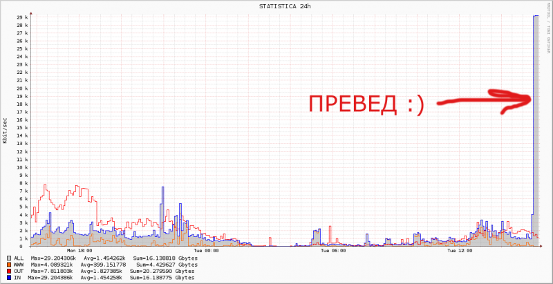 если бы там был тариф с подсчетом трафика, автор уже бы стал пожизненым рабом провайдера