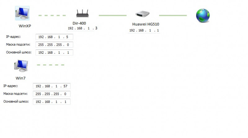 1 - Есть WiFi роутер, один WiFi клиент и второй клиент подключенный в порт WiFi роутера.