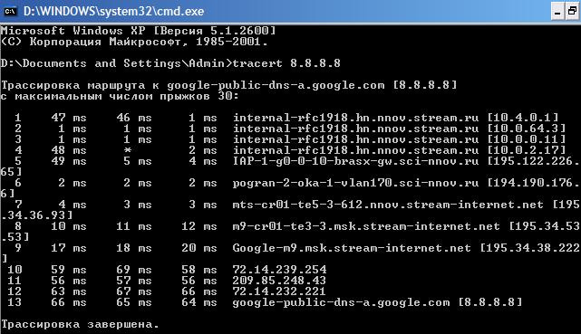 кстати сделал этот трейсер на машине, подключенной по кабелю (там все ок) - насчет первого айпи там все абсолютно так же