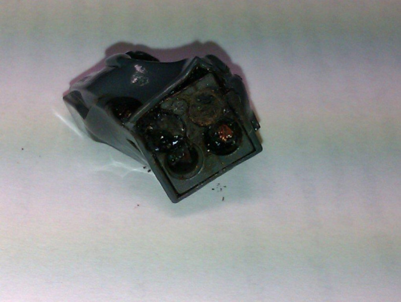 Знаете, что больше удивило? Что клемма выгорела там, где одножильные провода были вставлены, а не где луженый конец.