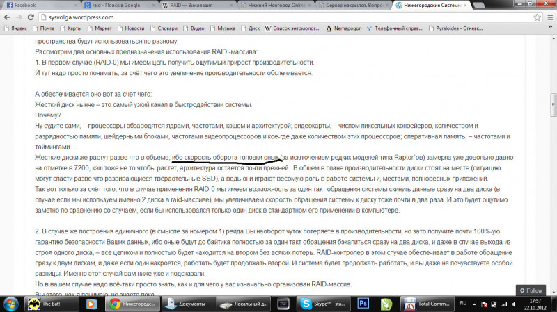 2. В случае же построения единичного (в смысле за номером 1) рейда Вы наоборот чуток потеряете в производительности, но зато получите почти 100%-ую гарантию безопасности Ваших данных, ибо оные будут до байтика полностью за один такт обращения бэкапиться сразу на два диска, и даже в случае выхода из строя одного диска, – все целиком и полностью будет находится на втором без всяких потерь. RAID-контролер в этом случае обеспечивает в работе обращение сразу к двум дискам, и даже если один накроется, работать будет продолжать второй. И система будет продолжать работать, и вы даже не почувствуете особой разницы. Именно этот случай вам ниже уже и подсказали.