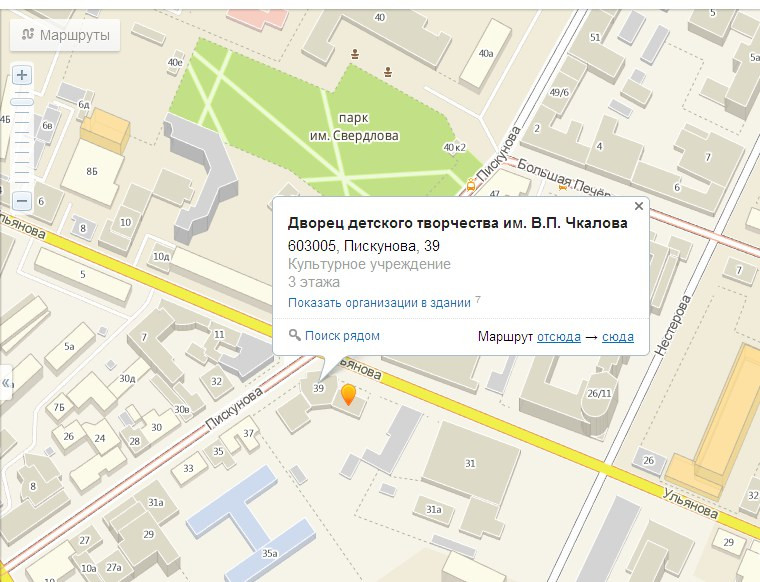 Дворец Пионеров это пересечение Ульянова и Пискунова