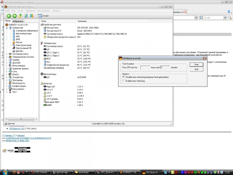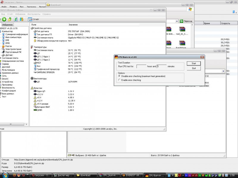 я б ещё предложил "не помню как прога называется"(надеюсь помогут вспомнить). прогу, которая грузит проц цифровым рядом чисел. весит немного, но там есть датчик температур и загрузка самого проца.