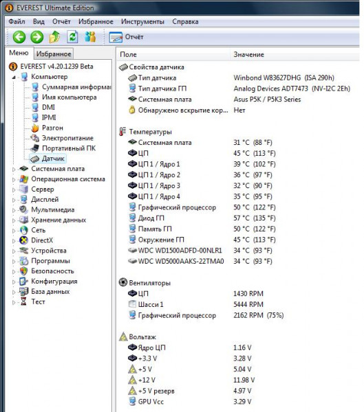 Отлично! :) Кстати, на мосте температура 70 градусов. Вроде некритично, но если хотите стабильности и долгой жизни, рекомендую хотя бы неторопясь посмотреть... скорее всего штатный радиатор просто мал. Судя по остальным температурам грешить на охлаждение корпуса смешно.