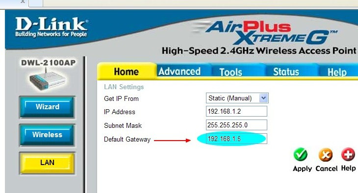 Что нужно вписать в поле Default Gateway если точка включена в устройство без IP адреса???