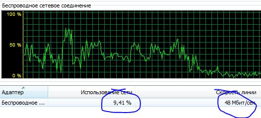 Вот сейчас соединение 48К, но процент использования сети опять же в пределах 5-10%, что дает от силы 1,2 МБ/сек