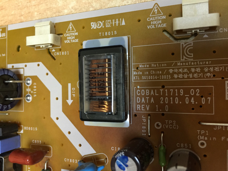 где-то шьет высокое - характерный звук и запах озона. Визуально смотрел в темноте - на плате в окрестностях трансформатора и коннекторов для ламп ничего не наблюдается. Картинка на дисплее есть, но яркость дергается. Пропаивал все силовые компоненты - не помогло. Из высоковольтных элементов только транс - грешу на него...