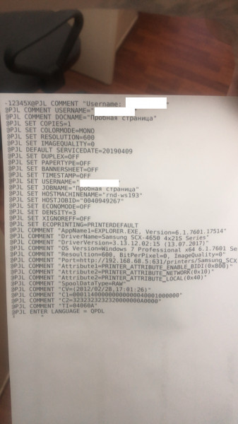 такое ощущение, что принтер не понимает формат, в котором ему отправляют задания на пачать...