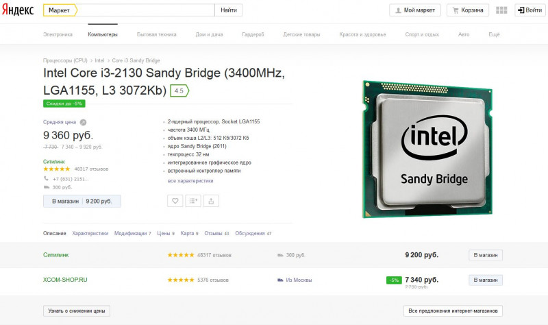 Sandy Bridge 32нм - 9200 рублей = Core i3 2130 End of Life, выпущен 03-11, поддержка памяти DDR3 1066/1333