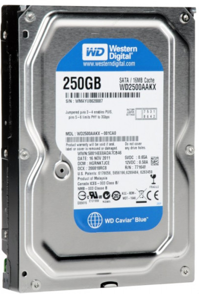 Жесткий диск HDD 250ГБ, 3.5", 7200об/мин, 16МБ, SATA III, Western Digital Caviar Blue, WD2500AAKX