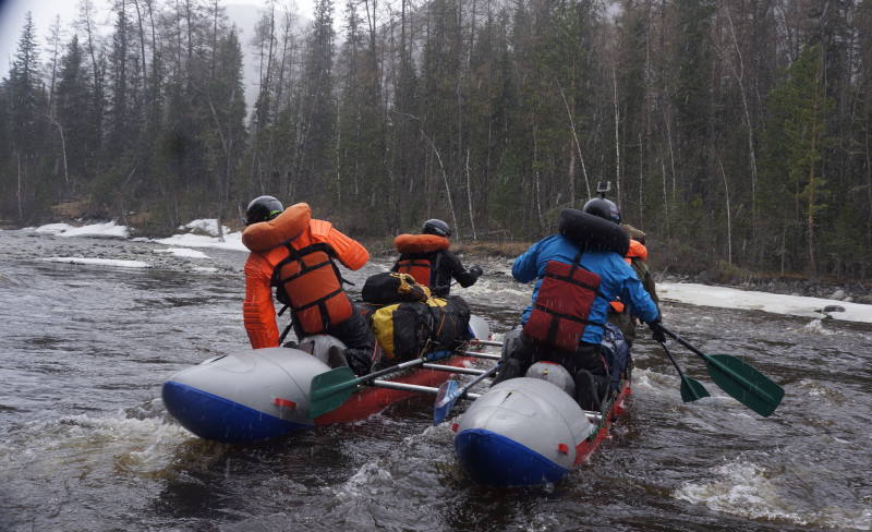 Все вещи перевозятся на машине по берегу. В байдарке сплавляетесь без вещей.