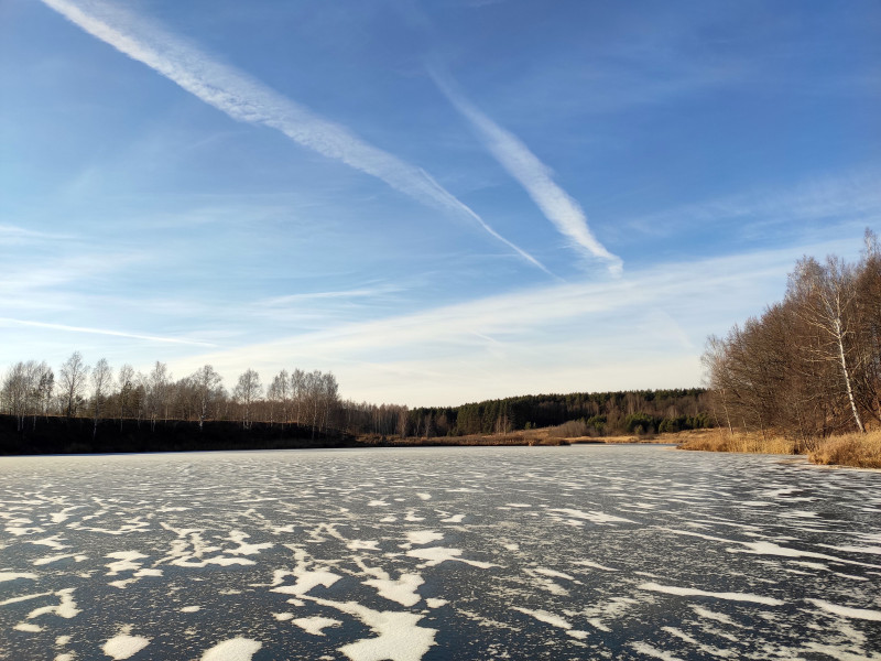 В прошлом году в конце ноября, ехал на велике по льду речки, а через несколько минут другую речку переходил по бревнышку... - В ее русле не было даже признаков льда!