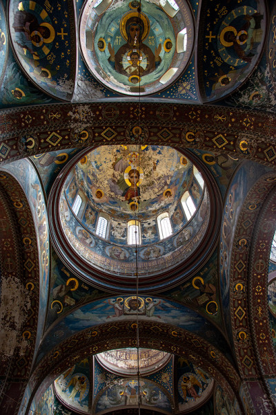 Наиболее круто монастырь выглядит снаружи, а вот внутри и стены храма несколько облуплены, и убранство небогато -- с российскими почитаемыми святынями сравнения не выдерживает. Из подслушанного невольно на входе разговора понял, что живёт братия тут несладко -- в русский патриархат не берут по неведомым мне причинам, а монашеский коллектив в данное время насчитывает всего 12 человек.