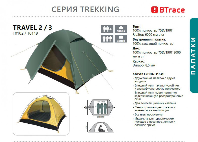 У меня палатка BTRACE SHIELD 3. В принципе, это аналог Tramp Mountain 3, только цвет приятнее. Палатка очень нравится, пользую 3ий сезон.