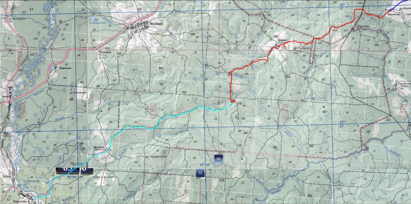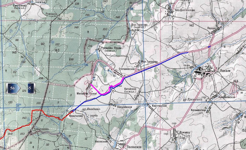 Я не знаю, ты в курсе или нет, что асфальтированная дорога Степановское - Михайлов Полом идет не как на километровке, а по моему треку, а далее на северо-запад по пунктиру. Это я на всякий случай.