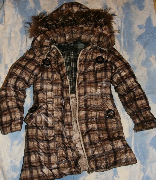 7) Не спортивная тематика, но уж заодно. Пальто синтепоновое. Длина 75 см, рукав 55 см. Размер написан S, чтобы это ни значило. 1тр.