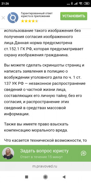 Вы мне кажется что-то попутали. Если фотографию не удалите, вас ждёт суд. Я вам разрешения на публикацию и распространение своих фото в соцсетях не давала, и вижу вас второй раз в жизни. Понятия не имею, что у вас на уме, с какой целью вы добавились ко мне в друзья и по какой причине вы не заявились в теме. Попрошу темы моих родственников не касаться, иначе ответите с лихвой. Посмотрите для справки в интернете, что вам грозит. Просто ради интереса, вы наверное не понимаете, о чем я.