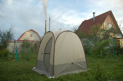 Мобиба нравится больше, чем стационарная баня в деревне у родственников. Топить ее очень быстро, днем используем как душевую. В ней не душно, за счет постоянного притока кислорода. Натопить можно так, что уши в трубочку сворачиваются, я даже дверь открываю. На природе вообще шикарно, напарился и в речку.